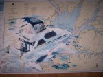 What to provide? It’s easy! Just send a digital picture of your boat to artoncharts@gmail.com and request the area you want covered in the chart background. Example ‘Chesapeake Bay’ ‘Narragansett Bay’ ‘Cape Cod’ ‘Grand Traverse Bay’ ‘Bahamas’ etc. Be sure the photograph is one you like. Does it offer contrast? Color? Photos taken at dawn and dusk can be dramatic. Does the photo have motion? Can you get a friend to shoot one while you are underway?